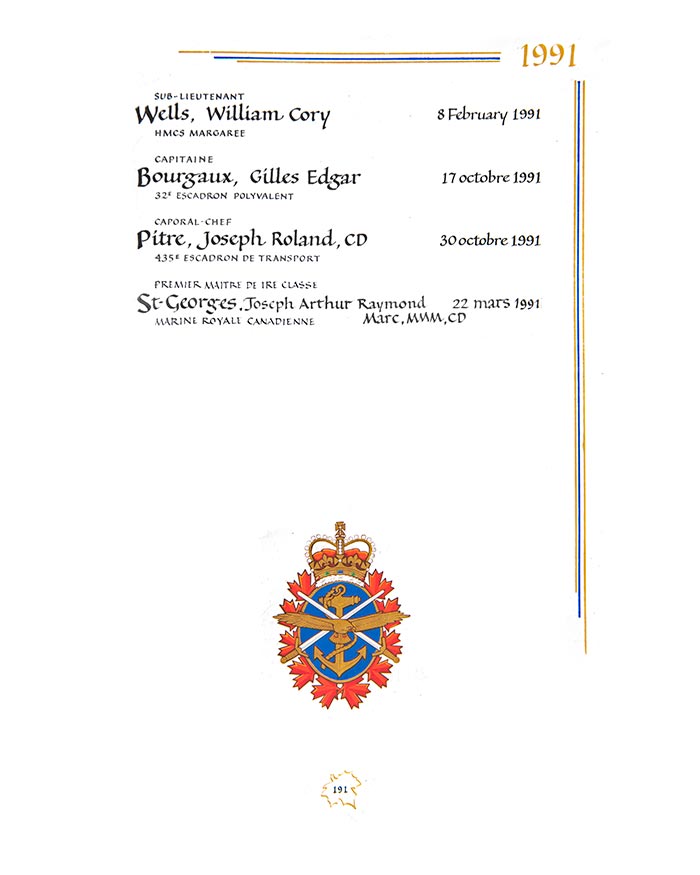 Cette page est en vedette dans la Chapelle du Souvenir de la Tour de la paix, à Ottawa, les jours suivants :