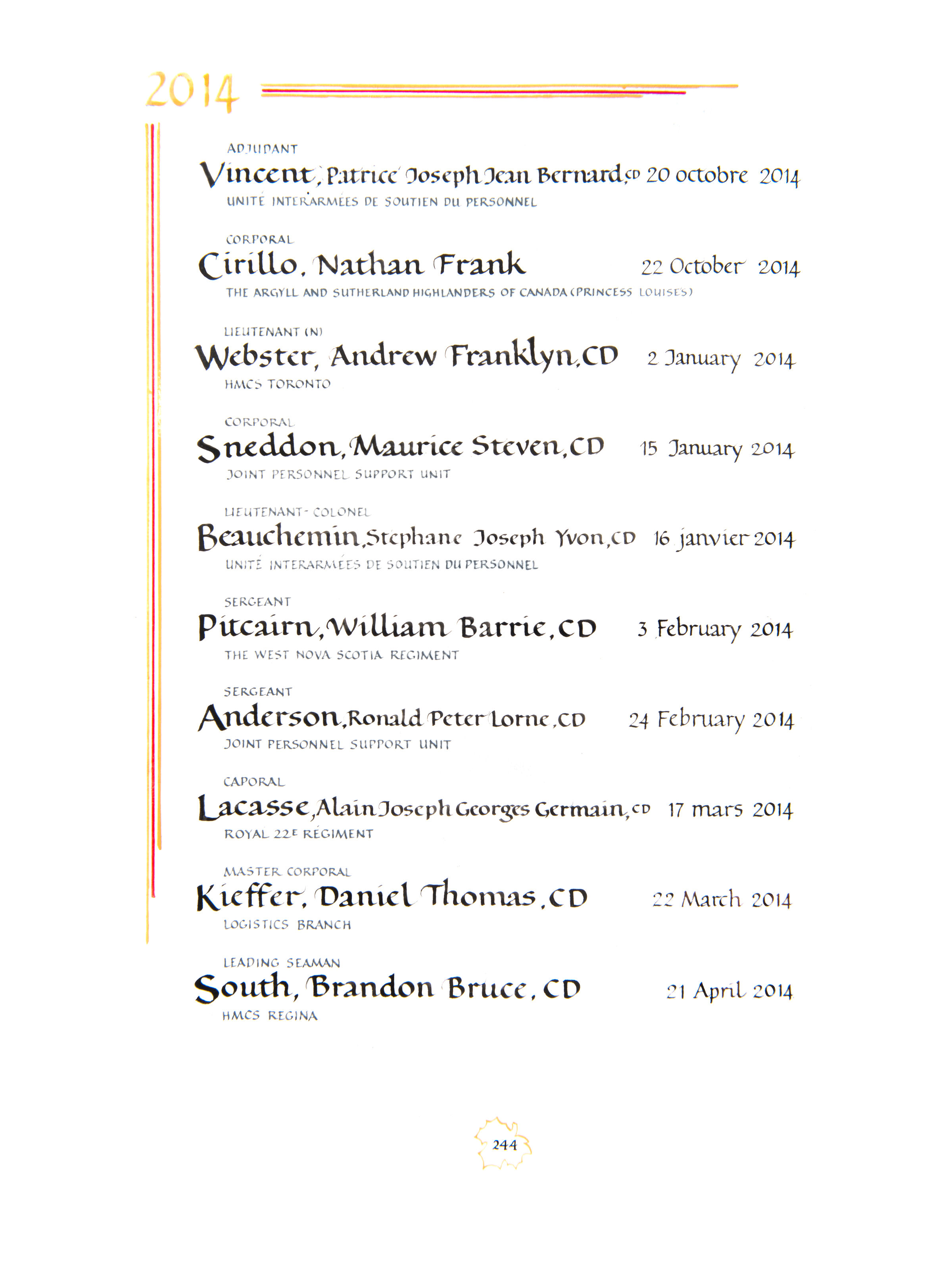 | 80004143 | Anderson | Ronald Peter Lorne | 24 février 2014 | Sergent | |