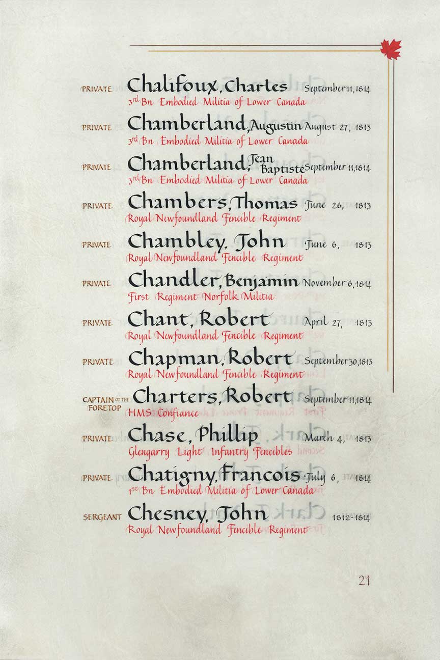 | Chamberland | Jean Baptiste | 11 septembre 1814 | Soldat | ||