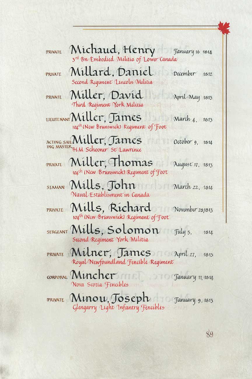 | Mills | Solomon | 5 juillet 1814 | Sergent | ||