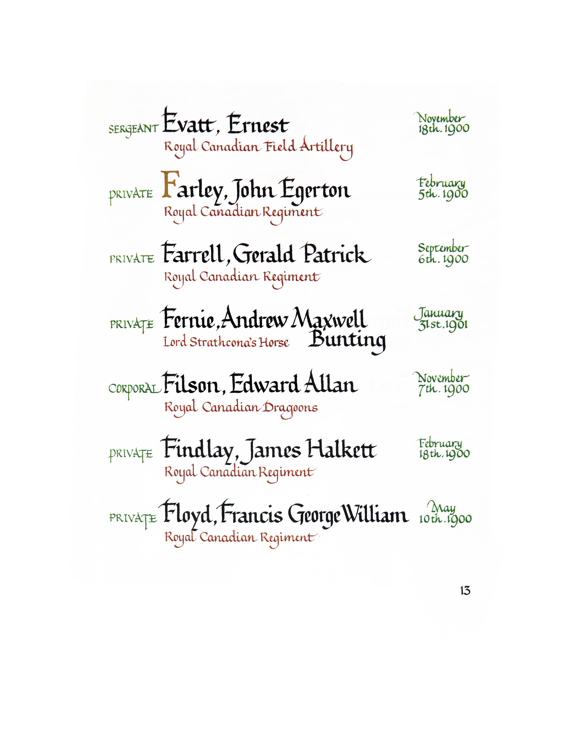 Cette page est en vedette dans la Chapelle du Souvenir de la Tour de la paix, à Ottawa, les jours suivants :