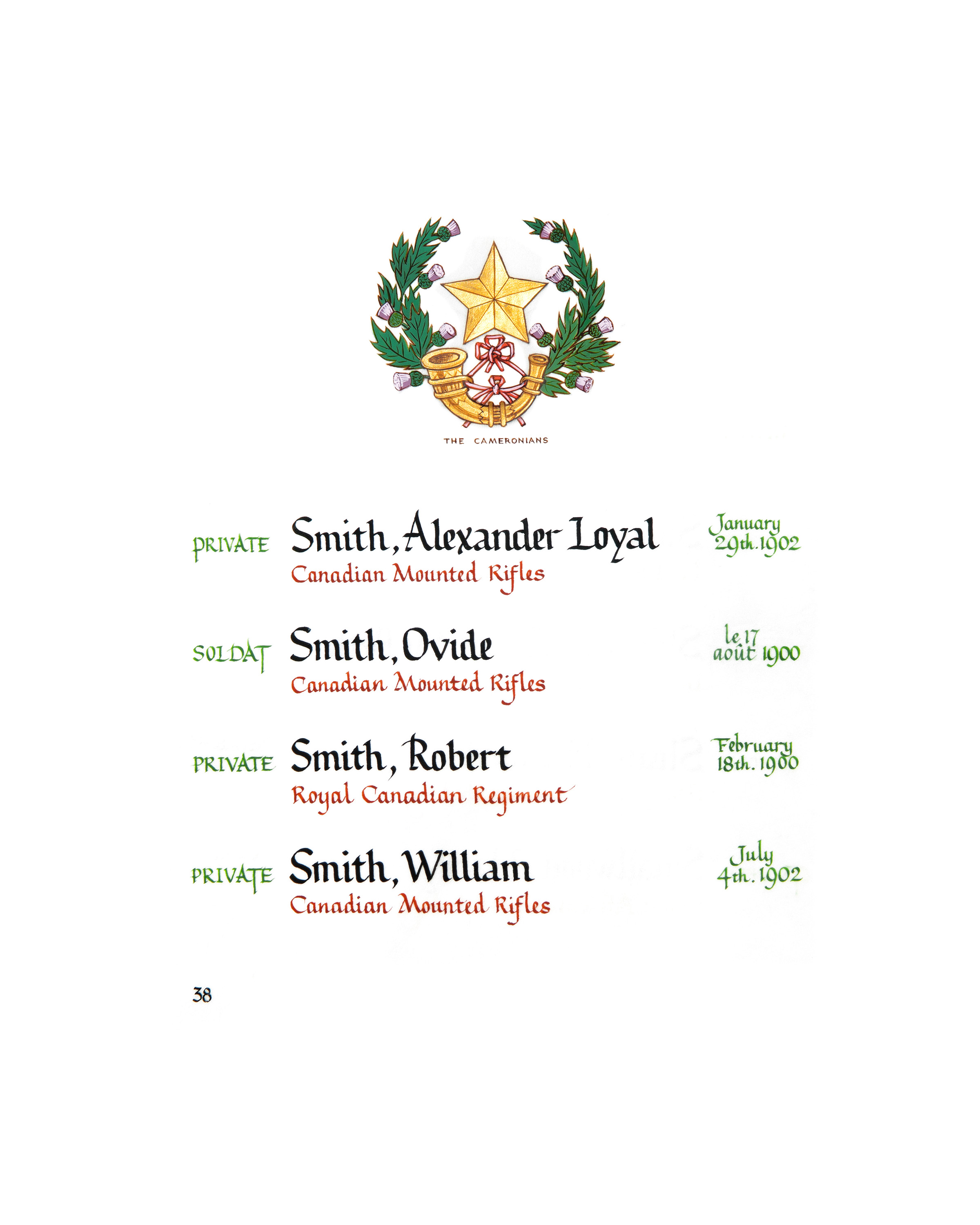 Cette page est en vedette dans la Chapelle du Souvenir de la Tour de la paix, à Ottawa, les jours suivants :