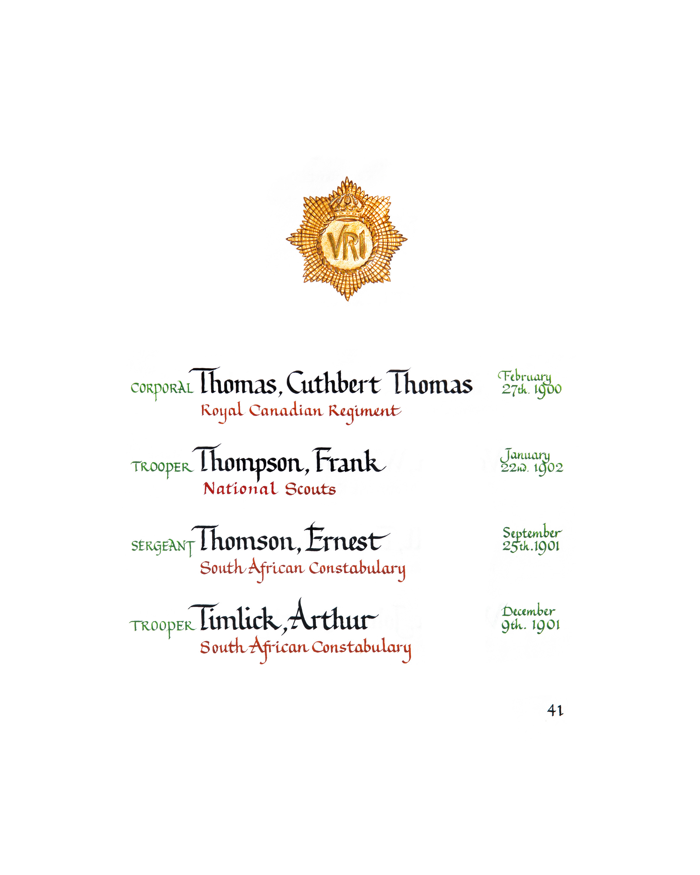 Cette page est en vedette dans la Chapelle du Souvenir de la Tour de la paix, à Ottawa, les jours suivants :