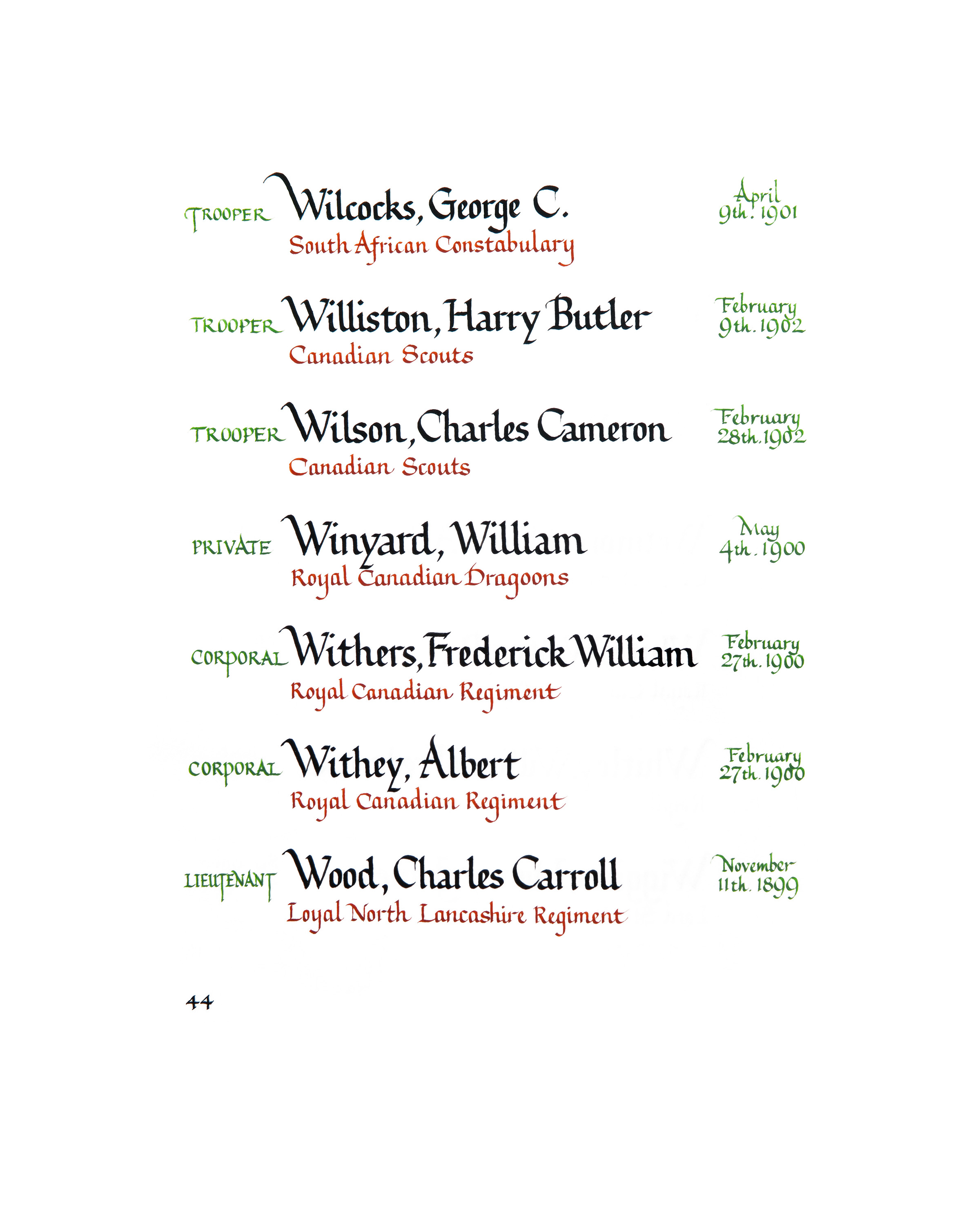 Pour plus de renseignements sur les personnes inscrites sur cette page, cliquez leur nom ci-dessous pour vous rendre à leur page personnelle dans le Mémorial virtuel de guerre du Canada.