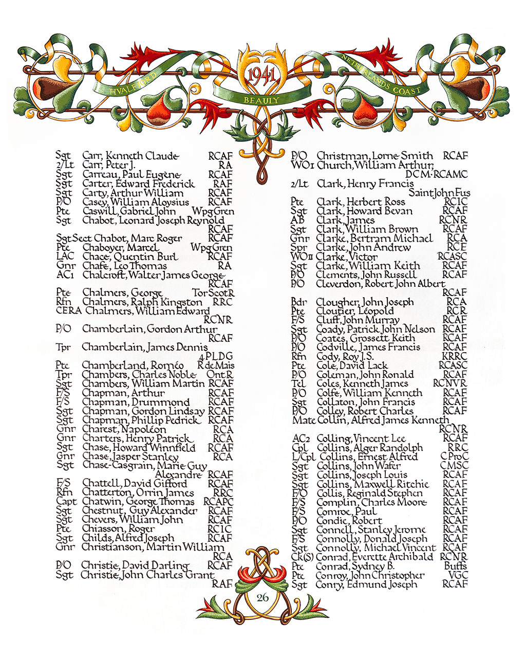 | 2622520 | Chapman | Arthur | 1 janvier 1941 | F/S | RCAF |