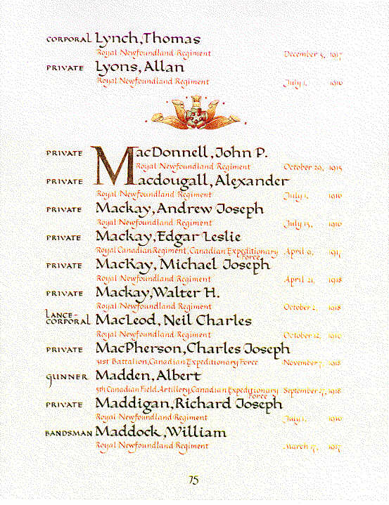 | 84261 | Mackay | Andrew Joseph | 13 juillet 1916 | Soldat | Royal Newfoundland Regiment |