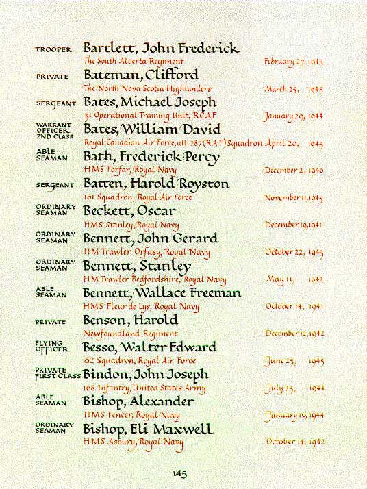 | 1813909 | Besso | Walter Edward | 25 juin 1945 | Lieutenant d'aviation | |