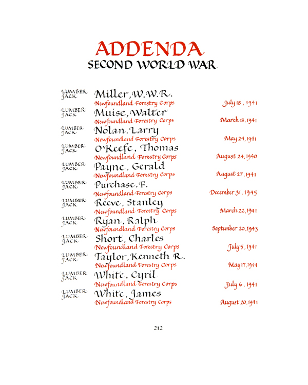 | 4511208 | Miller | W.W.R. | 18 juillet 1941 | Newfoundland Forestry Corps | |