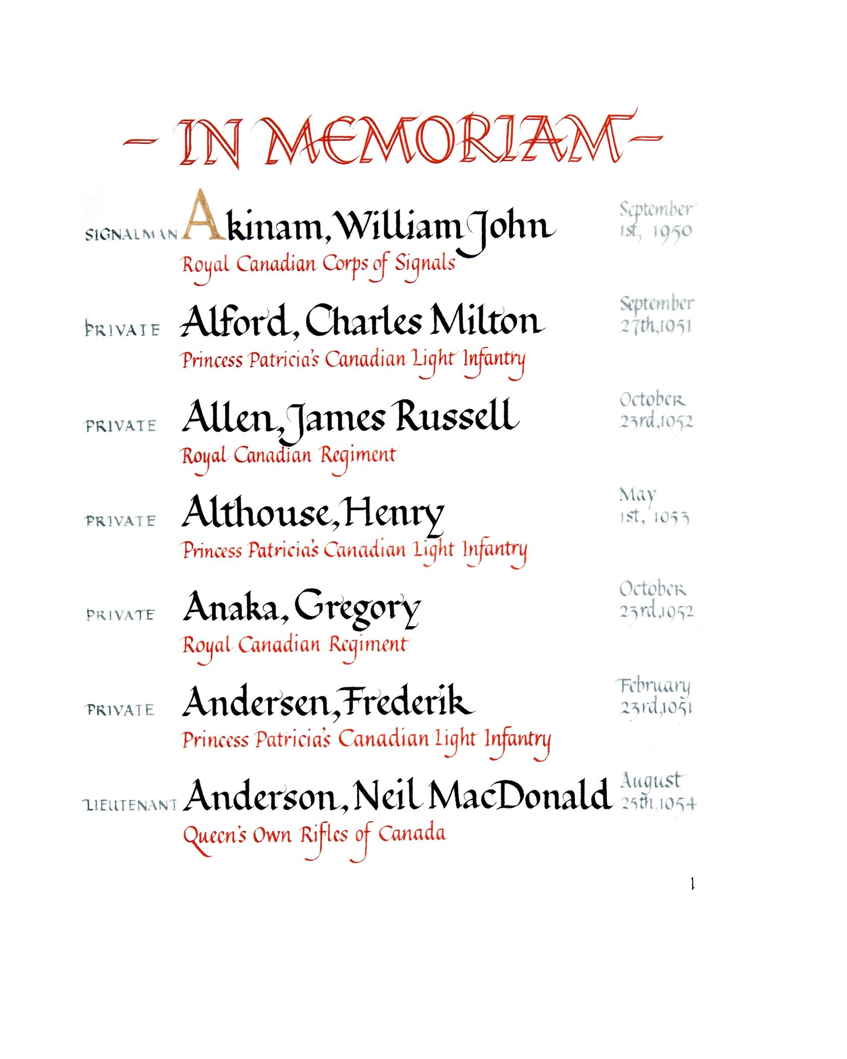 Cette page est en vedette dans la Chapelle du Souvenir de la Tour de la paix, à Ottawa, les jours suivants :