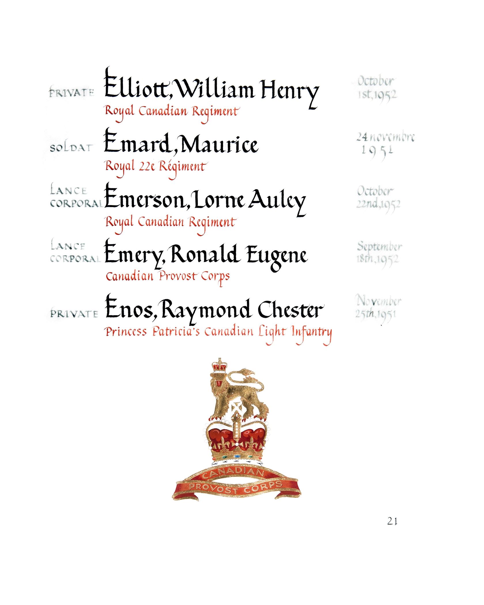 Cette page est en vedette dans la Chapelle du Souvenir de la Tour de la paix, à Ottawa, les jours suivants :