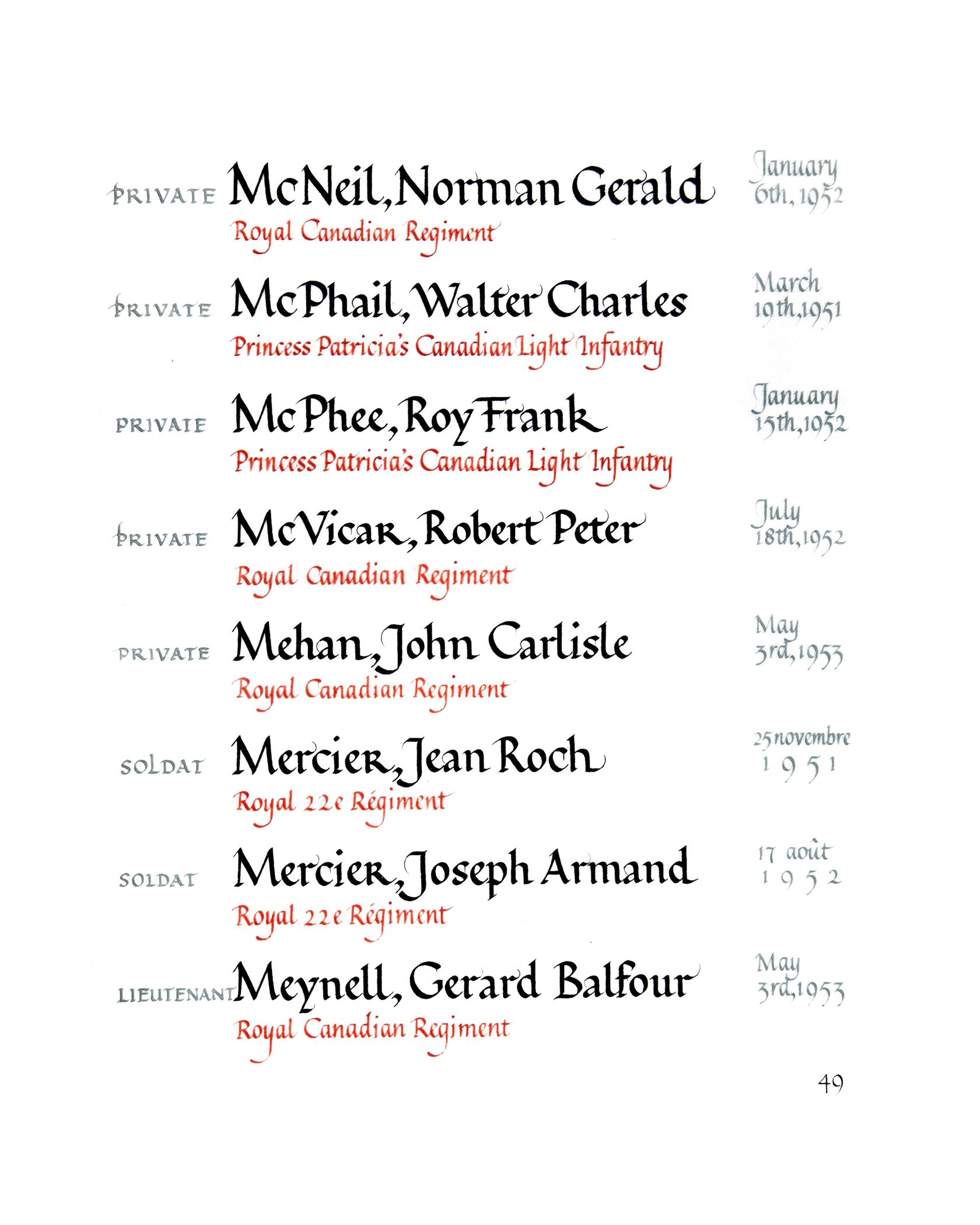 | 80000305 | Meynell | Gerard Balfour | 3 mai 1953 | Lieutenant | Royal Canadian Regiment |