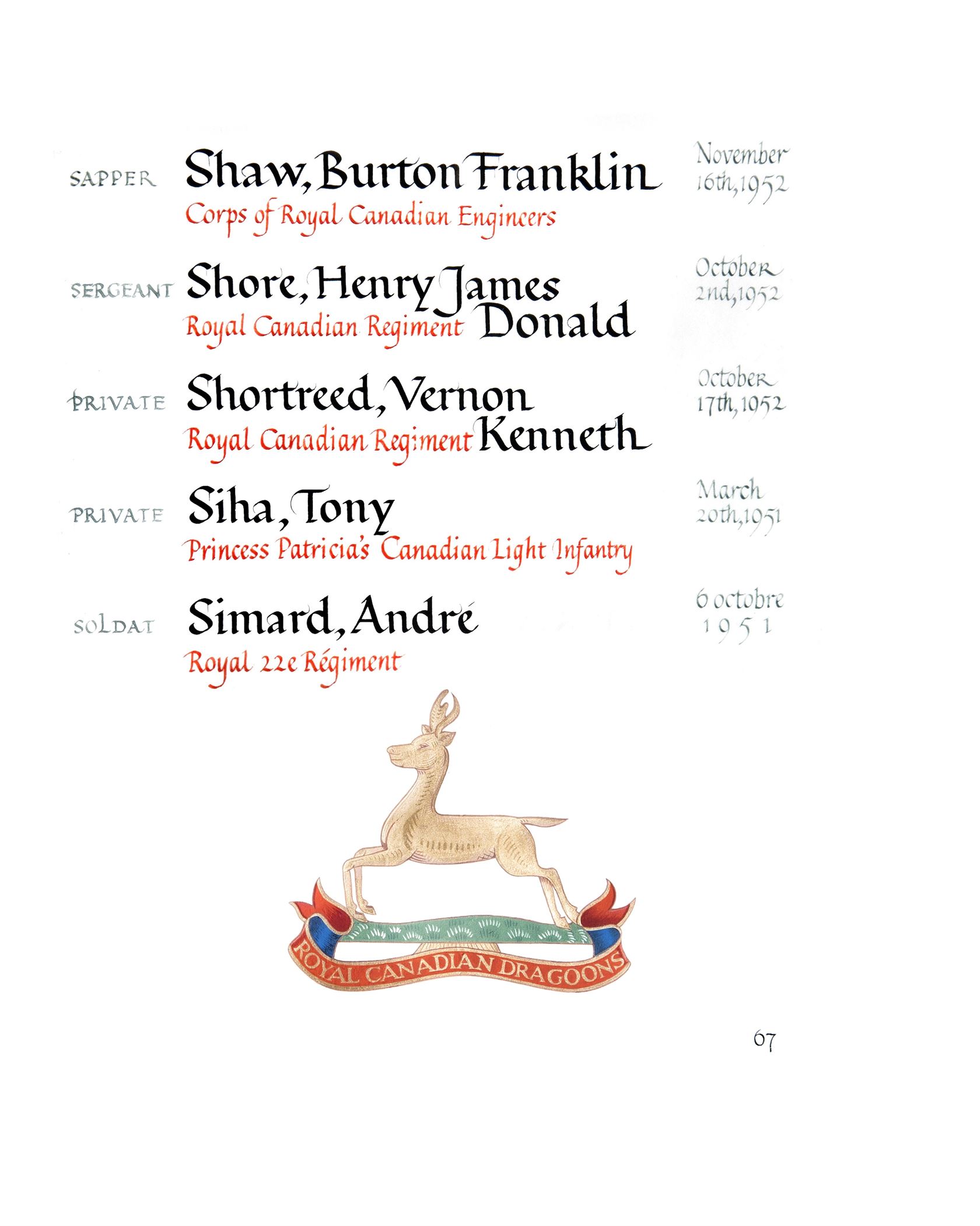 Cette page est en vedette dans la Chapelle du Souvenir de la Tour de la paix, à Ottawa, les jours suivants :