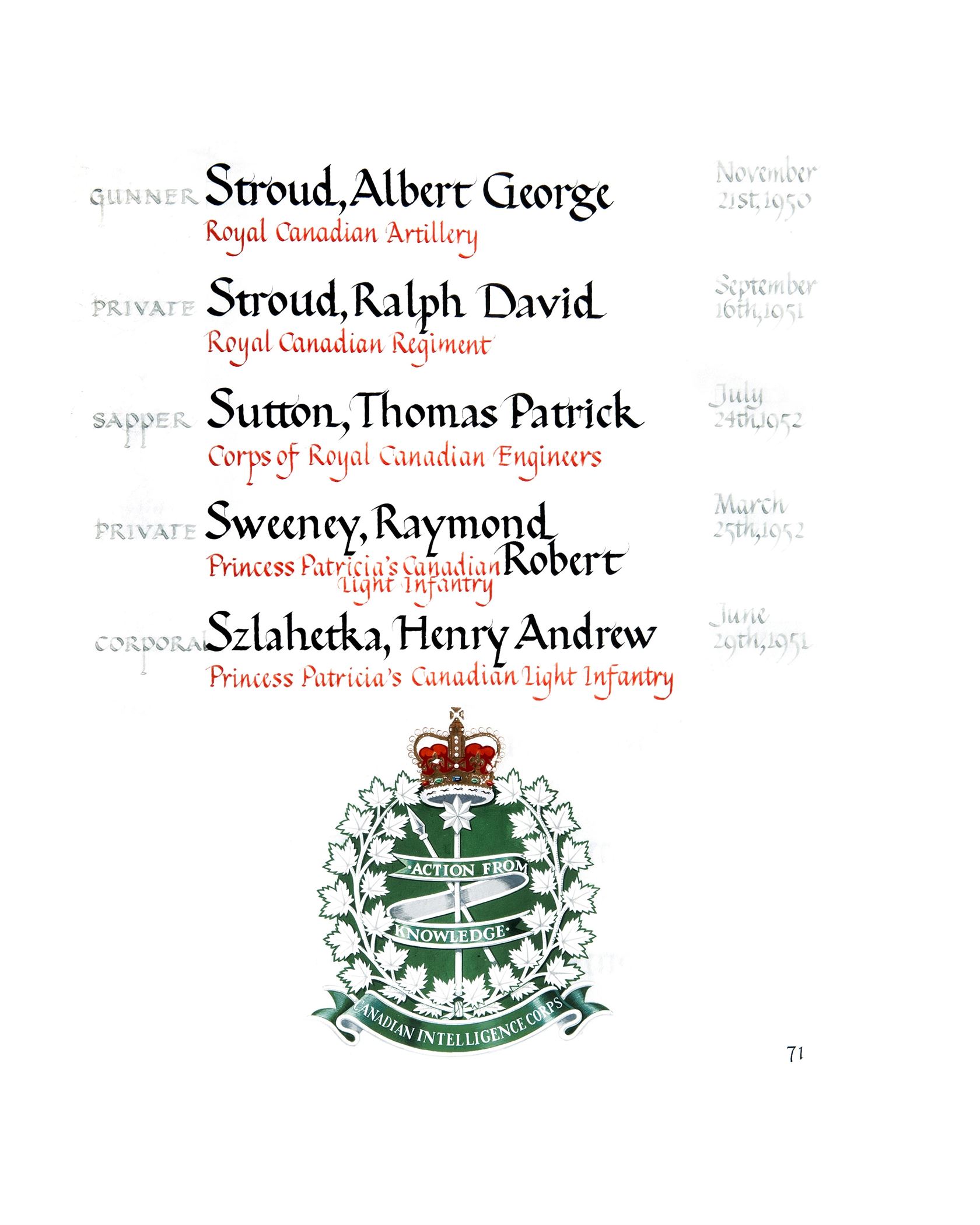 Cette page est en vedette dans la Chapelle du Souvenir de la Tour de la paix, à Ottawa, les jours suivants :