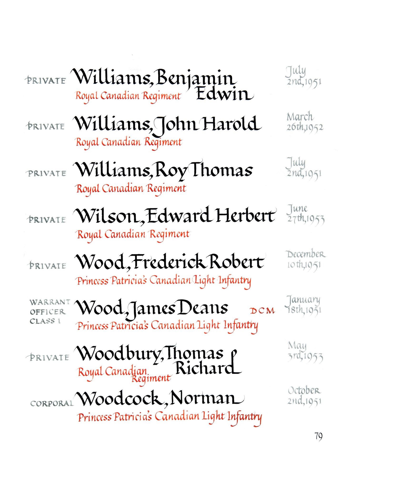 | 80000485 | Williams | Roy Thomas | 2 juillet 1951 | Soldat | Royal Canadian Regiment |