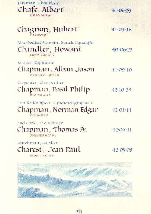 | 80000937 | Chandler | Howard | 23 juin 1940 | Able-Bodied Seaman | Lady Rodney |