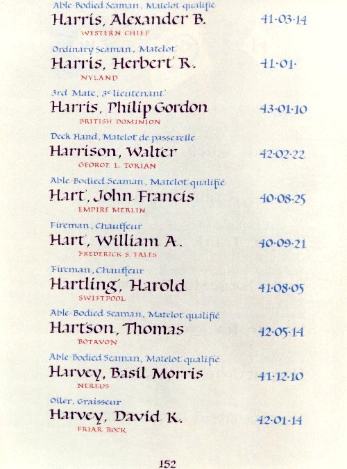 | 2558389 | Hart | John Francis | 25 août 1940 | Able-Bodied Seaman | Empire Merlin |