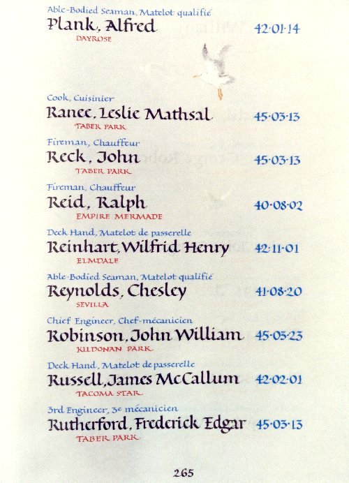 | 2640625 | Reinhart | Wilfrid Henry | 1 novembre 1942 | Deck Hand | Elmdale |