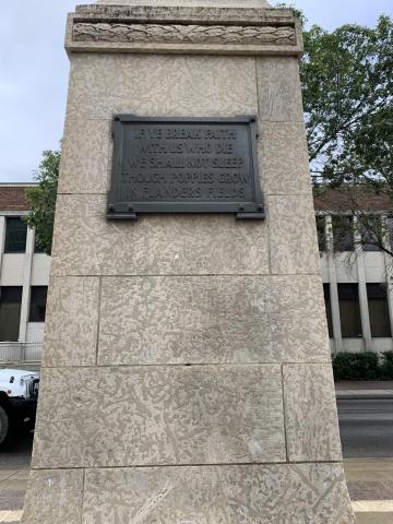 Des rouleaux de parchemin contenant les noms des personnes tuées pendant la Première Guerre mondiale ont été placés dans un tube de cuivre dans le piédestal. Un autre rouleau contient les noms des gens du district de Red Deer qui ont servi pendant la Première Guerre mondiale. En 1949, la plaque de bronze du cénotaphe a été modifiée pour y inscrire le nom des personnes décédées pendant la Seconde Guerre mondiale. En 1988, la plaque a été modifiée pour inclure les personnes décédées pendant la guerre de Corée.