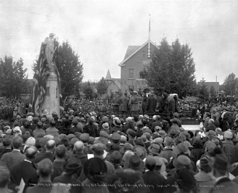 Parmi les 850 jeunes hommes et femmes du district de Red Deer qui ont servi pendant la Grande Guerre, 118 ont été tués. Le 18 décembre 1918, cinq semaines après la fin de la guerre, la section locale du centre de l’Alberta de l’Association des vétérans de la Grande Guerre (précurseur de la Légion royale canadienne) a organisé une grande réunion publique pour discuter d’un monument commémoratif. Le 20 mai 1920, le comité du monument commémoratif et de l’édifice communautaire s’est réuni pour discuter de la nécessité d’ériger un monument commémoratif.