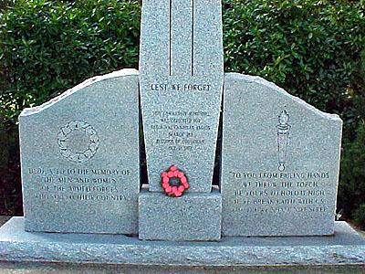 La plaque commémorative qui honore la mémoire des frères Alan Robert Bell, William Harrison Ingram, Archer Robert Payze et James Osman Slade Young, tous morts au service de leur pays lors de la Première Guerre mondiale (1914-1918), fut inaugurée le 11 novembre 2013.