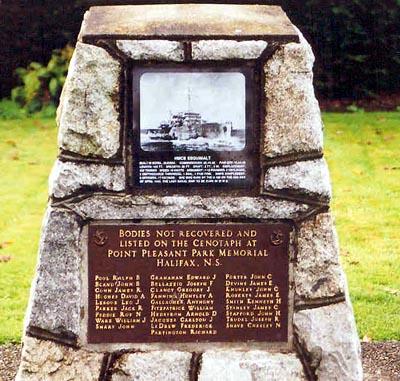 Ce monument a été érigé le 10 avril 1989 par l’association du mémorial du NCSM Esquimalt, en l’honneur des membres de l’équipage qui ont perdu la vie le 6 avril 1945. Il commémore le naufrage du dernier navire de guerre canadien torpillé aux abords de Halifax, le 16 avril 1945 aux petites heures du matin. En tout, 44 hommes de tous grades ont perdu la vie après avoir passé plus de sept heures dans les eaux glaciales de l’Atlantique Nord. Il y a eu 27 survivants, dont Terrence C. Manuel. Comme la Ville d’Esquimalt a adopté le nom du navire et qu’une bonne partie de son équipage venait de l’Ouest, il était approprié qu’un tumulus y soit érigé à la mémoire des naufragés de l’Esquimalt.