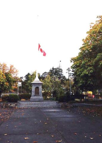 Two stone monuments - the community war memorial at Kettle Valley, B.C., and a family marker in Ross Bay Cemetery, Victoria - reflect the price Canadian families paid for the combined war effort of fathers, sons and daughters.
