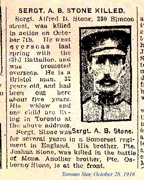Son of James and Kate Stone, of Bristol, England; husband of Mabel Mary Stone, of 230, Simcoe St., Toronto, Canada.