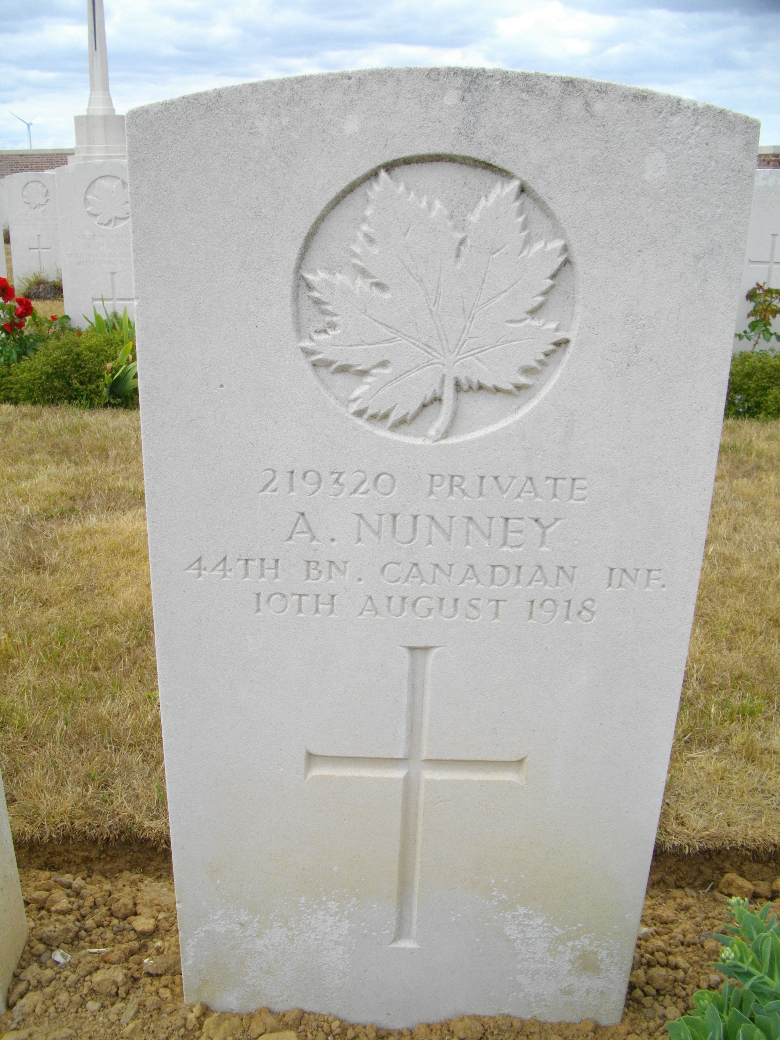 Brother of Private Claude Joseph Patrick Nunney, who died while serving with the Canadian Infantry (Eastern Ontario Regiment).