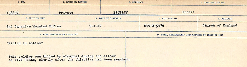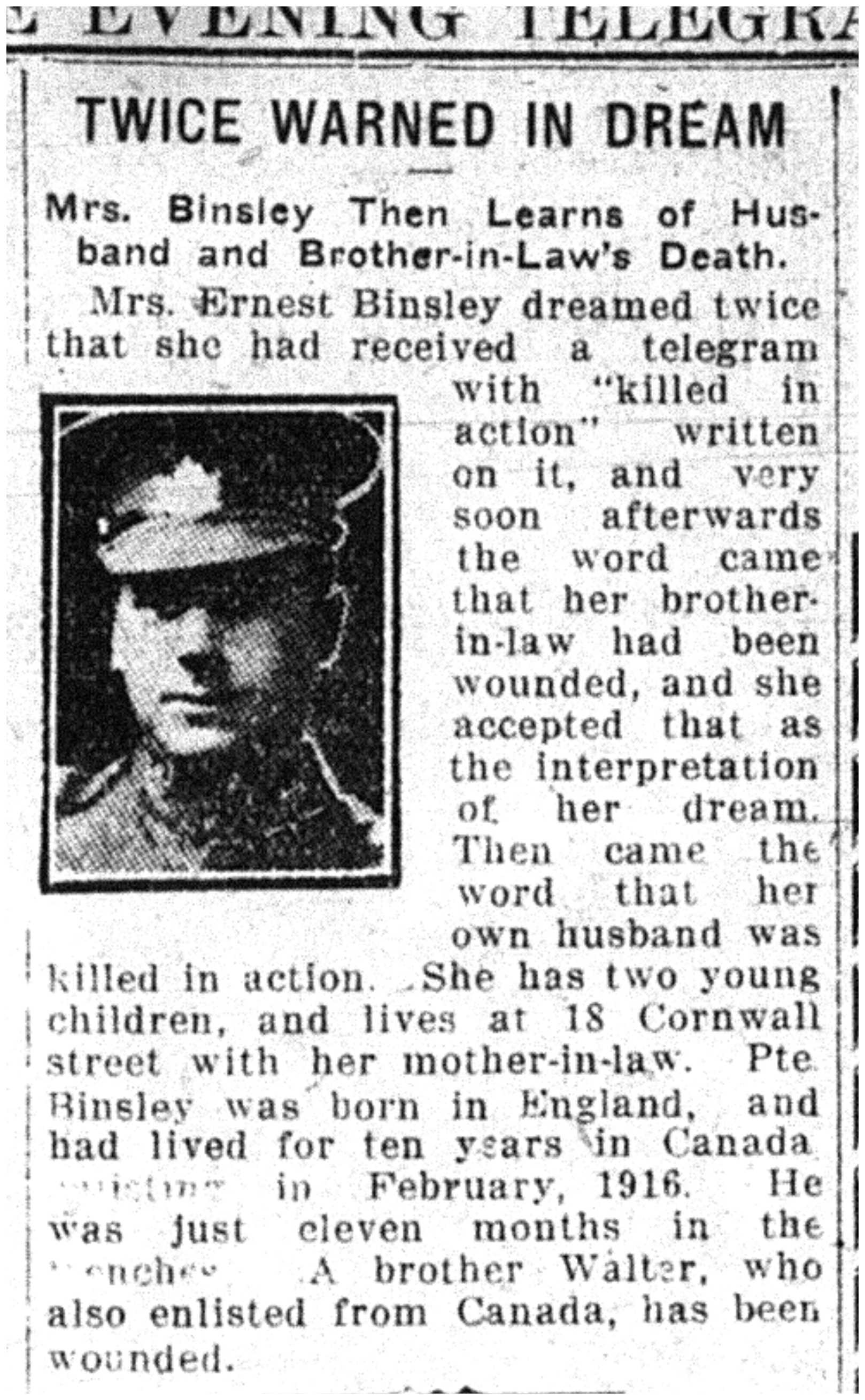 Son of George and Charlotte Binsley; husband of Ann Maria Binsley of Toronto.