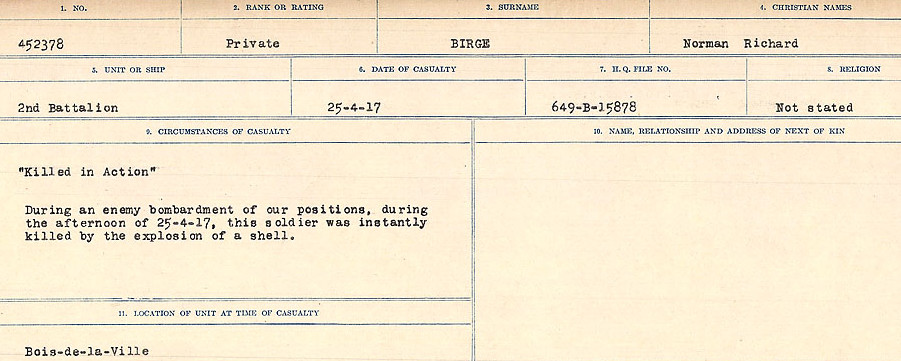 Son of Mrs. Mary Birge, of 1576, 8th Avenue East, Owen Sound, Ontario.