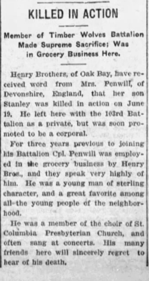 Son of James and Sarah Penwill, of Noss Mayo, Newton Ferrers, Devon.
