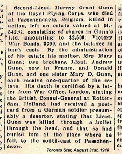 Son of Andrew and Mary Douglas Gunn, of Toronto, Ontario.
