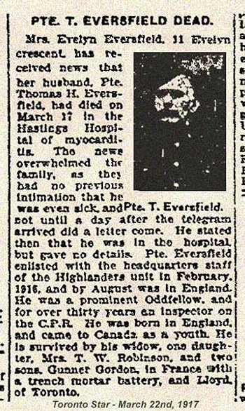 Husband of Elizabeth Eversfield, of 11, Evelyn Crescent, Toronto, Ontario.