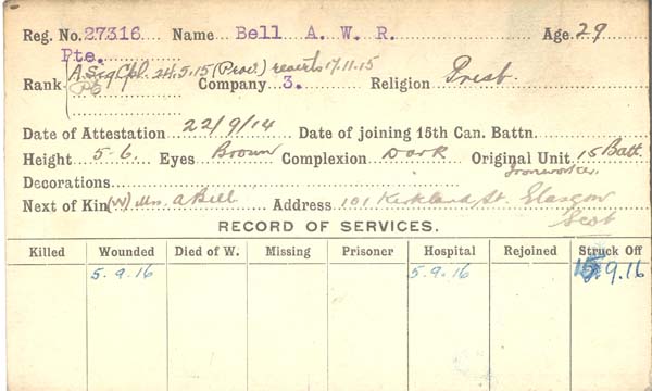 Son of Mr. and Mrs. A. W. R. Bell, of Glasgow; husband of Daisy Bell, of 1036, West 98th Street, Los Angeles, California.