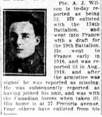 Son of John and Alice Wilson. Born at Toronto, Ontario.