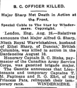 Husband of Ethel Sharp of Duncan, British Columbia.