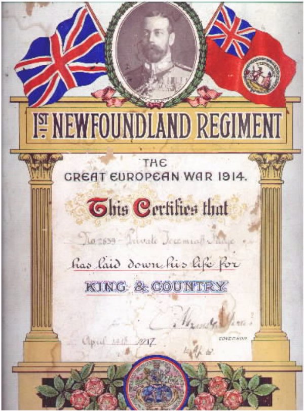 On the first day of the Battle of the Somme, no unit suffered heavier losses than the Newfoundland Regiment, which had gone into action 801 strong. When the roll call of the unwounded was taken next day, only 68 answered their names. The final figures that revealed the virtual annihilation of the Battalion gave a grim count of 233 killed or dead of wounds, 386 wounded, and 91 missing. Every officer who went forward in the Newfoundland attack was either killed or wounded.