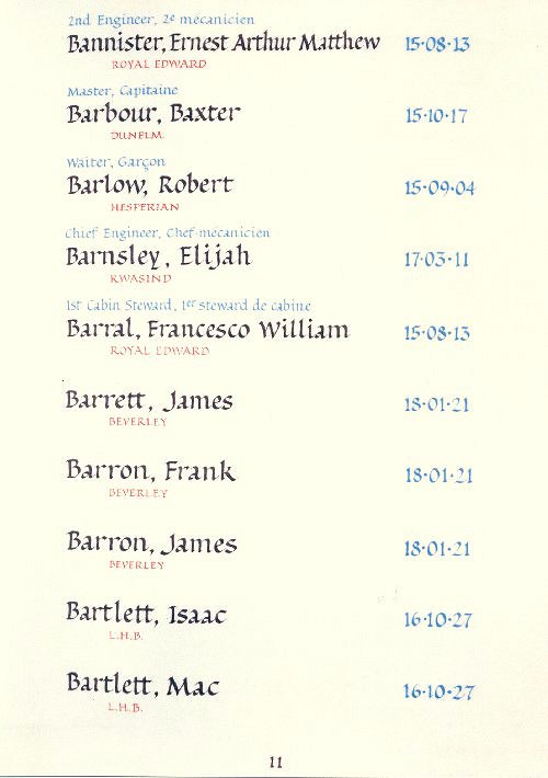 Page 11 of the Merchant Navy Book of Remembrance.