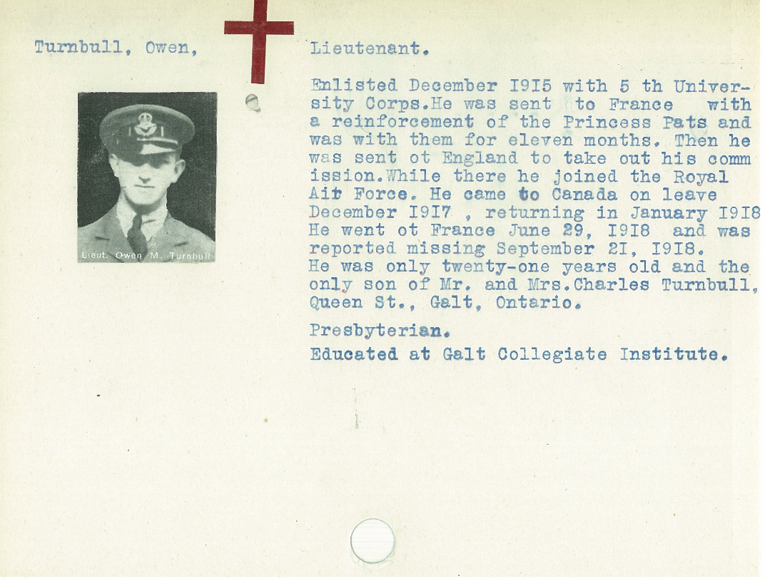 Digital gallery of Second Lieutenant Owen Mcilwraith Turnbull