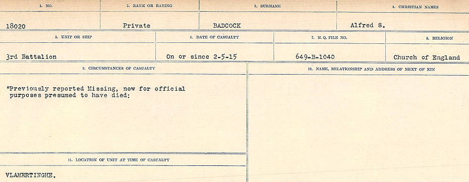 HERE ARE RECORDED NAMES OF OFFICERS AND MEN WHO FELL IN YPRES SALIENT BUT TO WHOM THE FORTUNE OF WAR DENIED THE KNOWN AND HONOURED BURIAL GIVEN TO THEIR COMRADES IN DEATH.