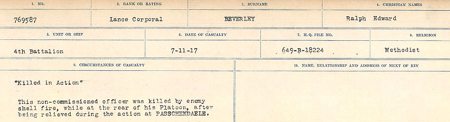 Digital gallery of Lance Corporal Ralph Edward Beverley
