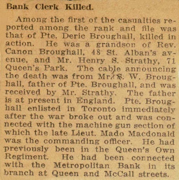 The dead are remembered to this day in a simple ceremony that takes place every evening at 8:00 p.m. All traffic through the gateway in either direction is halted, and two buglers (on special occasions four) move to the centre of the Hall and sound the Last Post. Two silver trumpets for use in the ceremony are a gift to the Ypres Last Post Committee by an officer of the Royal Canadian Artillery, who served with the 10th Battery, of St. Catharines, Ontario, in Ypres in April 1915."