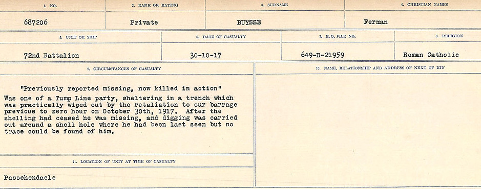 HERE ARE RECORDED NAMES OF OFFICERS AND MEN WHO FELL IN YPRES SALIENT BUT TO WHOM THE FORTUNE OF WAR DENIED THE KNOWN AND HONOURED BURIAL GIVEN TO THEIR COMRADES IN DEATH.