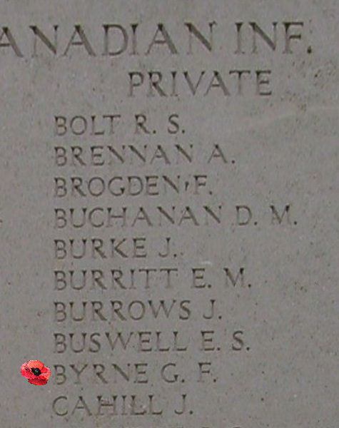 HERE ARE RECORDED NAMES OF OFFICERS AND MEN WHO FELL IN YPRES SALIENT BUT TO WHOM THE FORTUNE OF WAR DENIED THE KNOWN AND HONOURED BURIAL GIVEN TO THEIR COMRADES IN DEATH.
