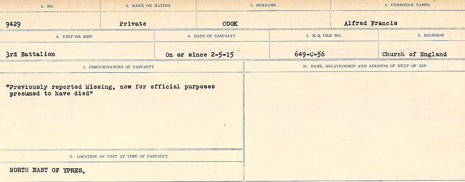 HERE ARE RECORDED NAMES OF OFFICERS AND MEN WHO FELL IN YPRES SALIENT BUT TO WHOM THE FORTUNE OF WAR DENIED THE KNOWN AND HONOURED BURIAL GIVEN TO THEIR COMRADES IN DEATH.