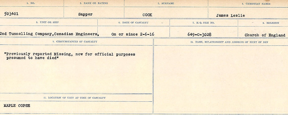 Digital gallery of Sapper James Leslie Cook