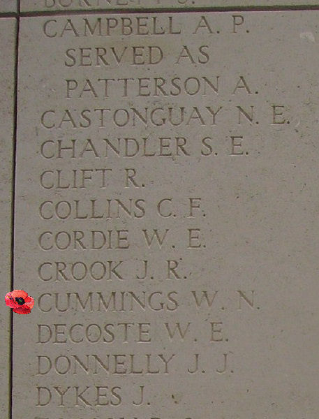 HERE ARE RECORDED NAMES OF OFFICERS AND MEN WHO FELL IN YPRES SALIENT BUT TO WHOM THE FORTUNE OF WAR DENIED THE KNOWN AND HONOURED BURIAL GIVEN TO THEIR COMRADES IN DEATH.