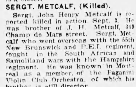 Son of James H. Metcalf, of Doncaster, England, and E. Metcalf.
