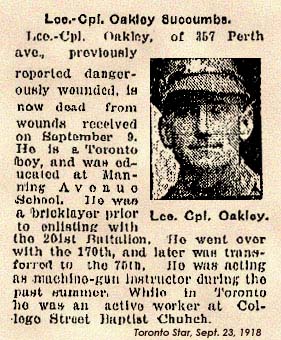 Son of Thomas and Ann Oakley, of 357, Perth Avenue, Toronto.