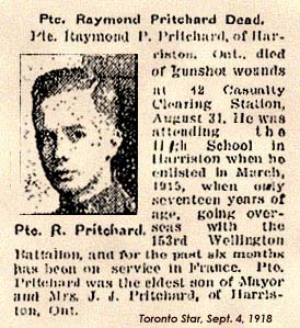 Son of Joseph J. and Emma A. Pritchard, of Harriston, Ontario.